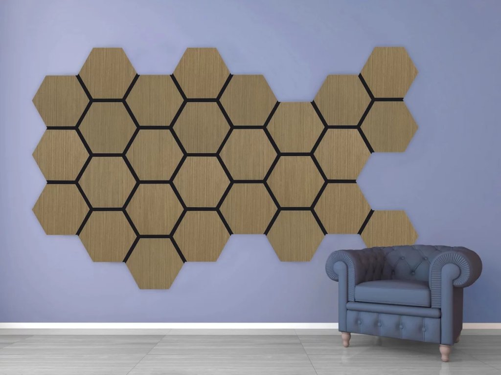 Akustický panel s dřevěnou dýhou Hexagon - dub hnědý