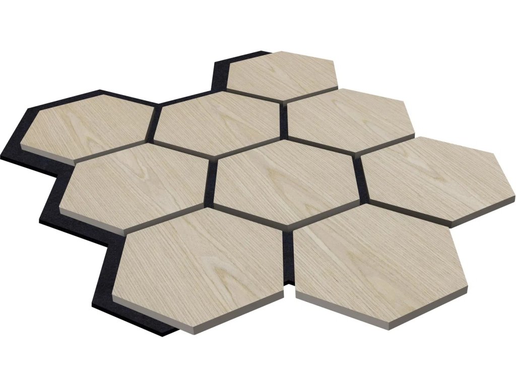 Akustický panel s dřevěnou dýhou Hexagon - dub světlý
