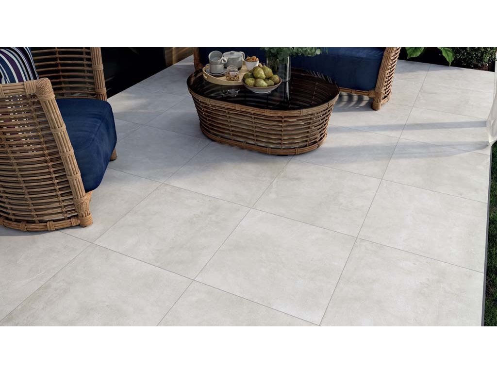 Moderní dlažba/obklad s imitací betonu, rektifikovaná s tloušťkou 7 m, protiskluznost R10.