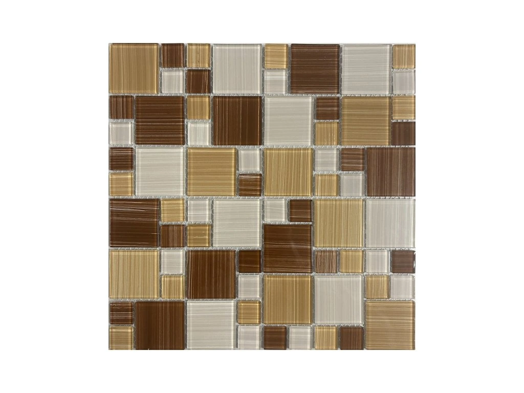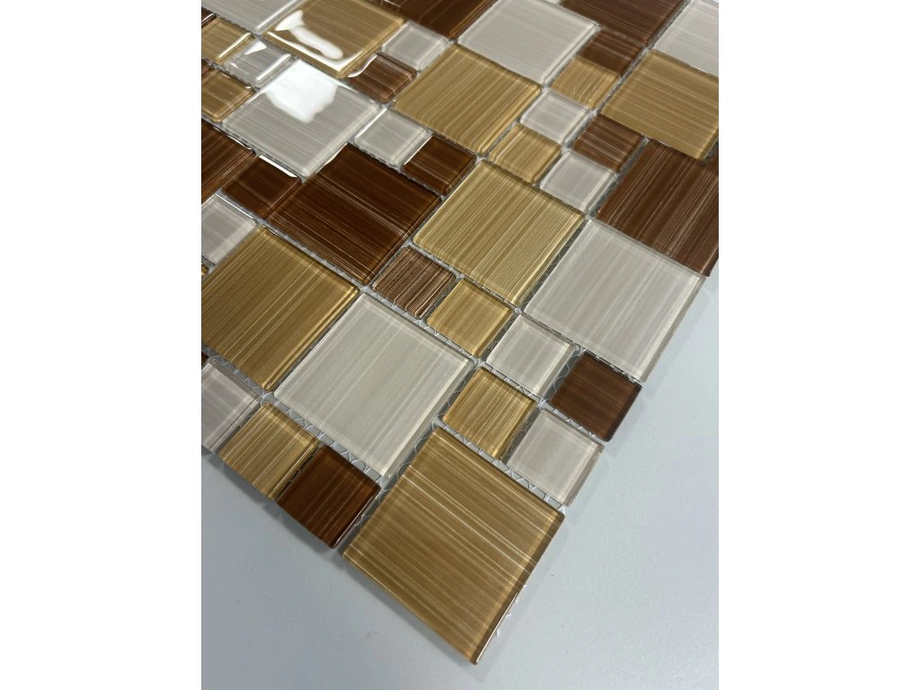 Mozaika MSM61 je elegantní skleněná mozaika hnědá žíhaná v lesklém provedení, která dodá každému interiéru luxusní a moderní vzhled. Díky rozměrům jednotlivých čtverečků 23x23 mm a 48x48 mm se skvěle hodí na obklady stěn i podlah v koupelnách, wellness zónách nebo kuchyních.