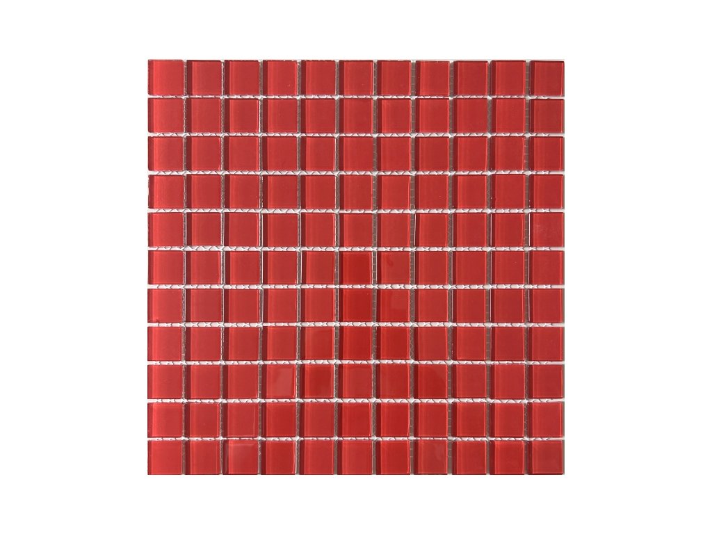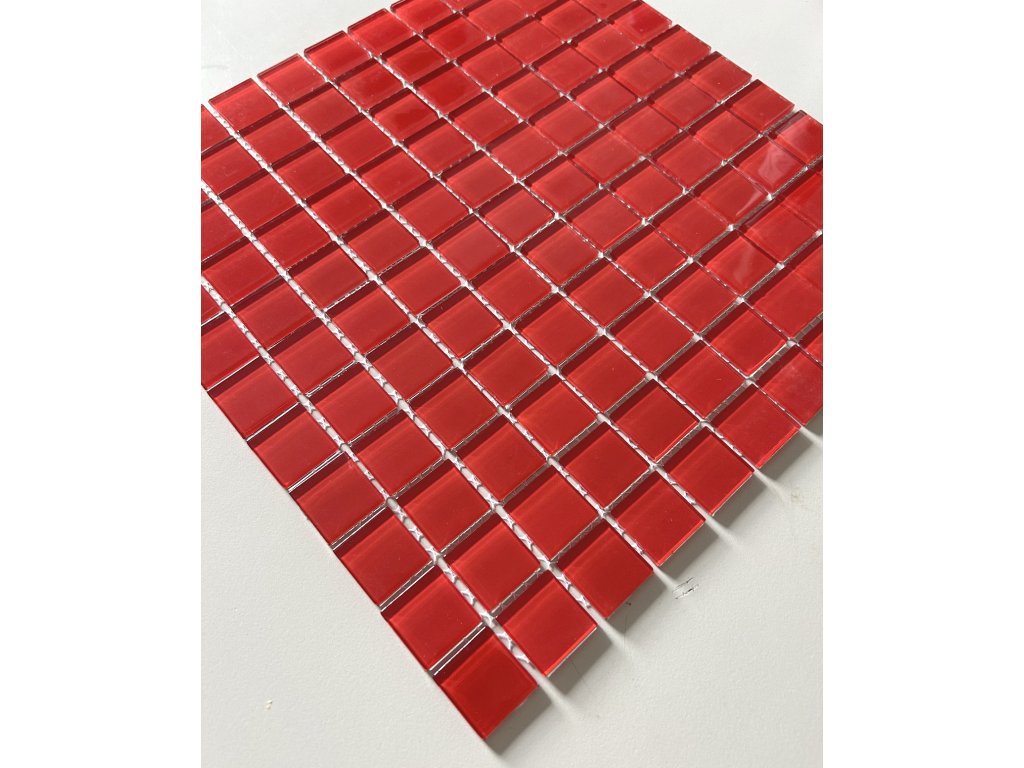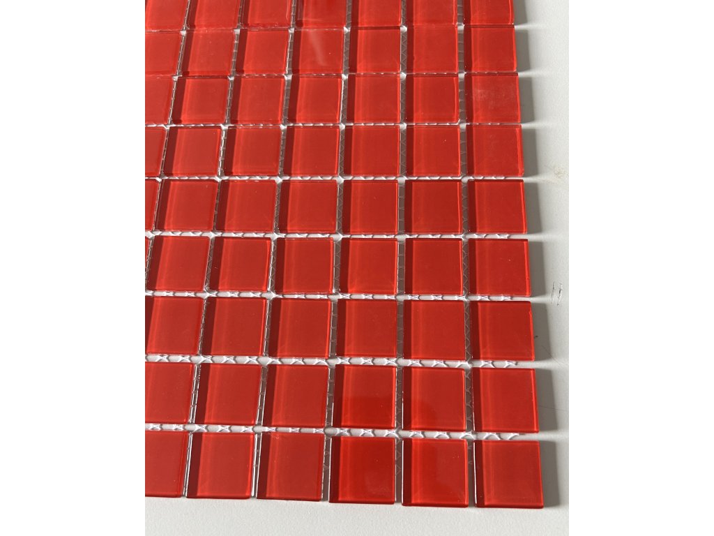 Jednobarevná skleněná mozaika červené barvy. Lze ji kombinovat s dalšími materiály, například s obkladem nebo dlažbou, čímž vytvoříte jedinečný designový prvek.